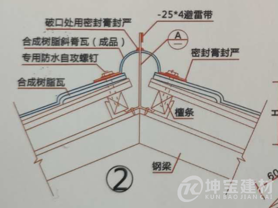 3 斜脊瓦需要鏇邊時,需在斜脊位置頂部加裝斜脊瓦掛瓦條,然后在斜脊瓦頂部鉆孔安裝。