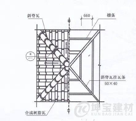 4 選用有邊斜脊瓦時,應將其固定在主瓦掛瓦條上。
