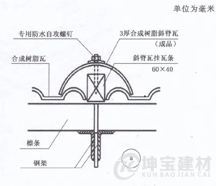 2 應在合成樹脂瓦的頂部天溝處進行固定。