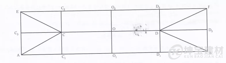 1 安裝前應根據現場屋面情況進行放線,下圖給出了四坡屋面放線的示例,兩坡屋面放線可參考圖中C2CC1D1DD2部分。