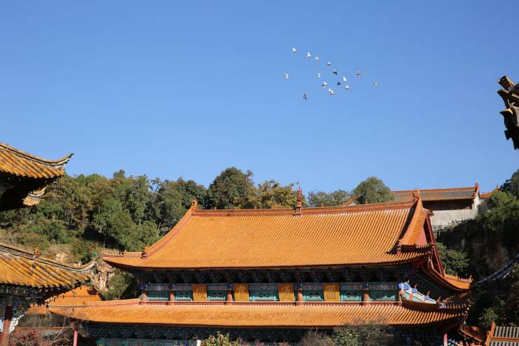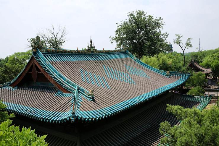 琉璃瓦身段尊貴,現身于帝王天家、寺廟。皇城相府護城墻一角的琉璃瓦亭,歷經百年雨霜磨礪依然閃耀康熙帝賜給股肱之臣的無上榮光。彩云之南澄碧天空下一群白鴿飛過黃色琉璃瓦的屋頂,給莊嚴的佛堂添了隨和。蜚聲四海的晉祠藍灰相間的大殿頂,冷靜中素麗。