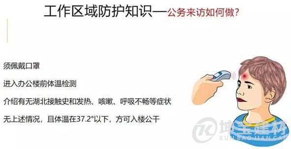須佩戴口罩。進入辦公樓前首先進行體溫檢測,并介紹有無湖北接觸史和發(fā)熱、咳嗽、呼吸不暢等癥狀。無上述情況,且體溫在37.2°正常條件下,方可入樓公干。