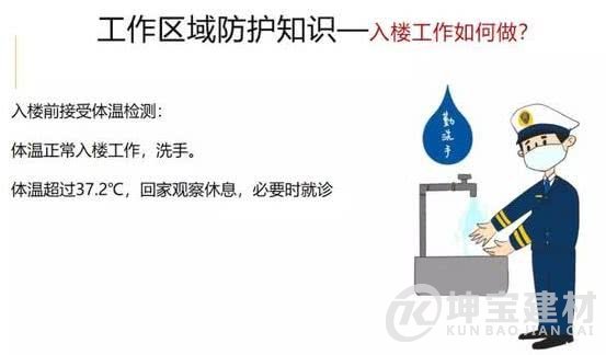 進入辦公樓前自覺接受體溫檢測,體溫正常可入樓工作,并到衛(wèi)生間洗手。若體溫超過37.2℃,請勿入樓工作,并回家觀察休息,必要時到醫(yī)院就診。
