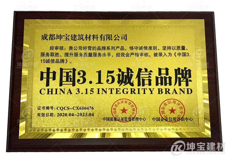 榮譽(yù)見證實(shí)力,2020年4月“坤寶合成樹脂瓦”品牌入選了“315誠(chéng)信品牌”,并獲得主辦方頒發(fā)的證書和牌匾,這是一份沉甸甸的榮譽(yù),也是一份認(rèn)可、一份鼓勵(lì),讓“坤寶樹脂瓦”走得更穩(wěn)、更遠(yuǎn)、飛得更高。