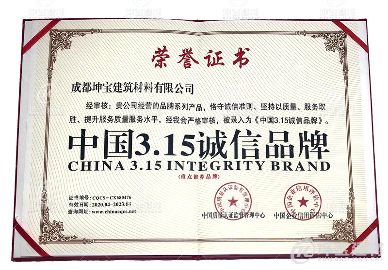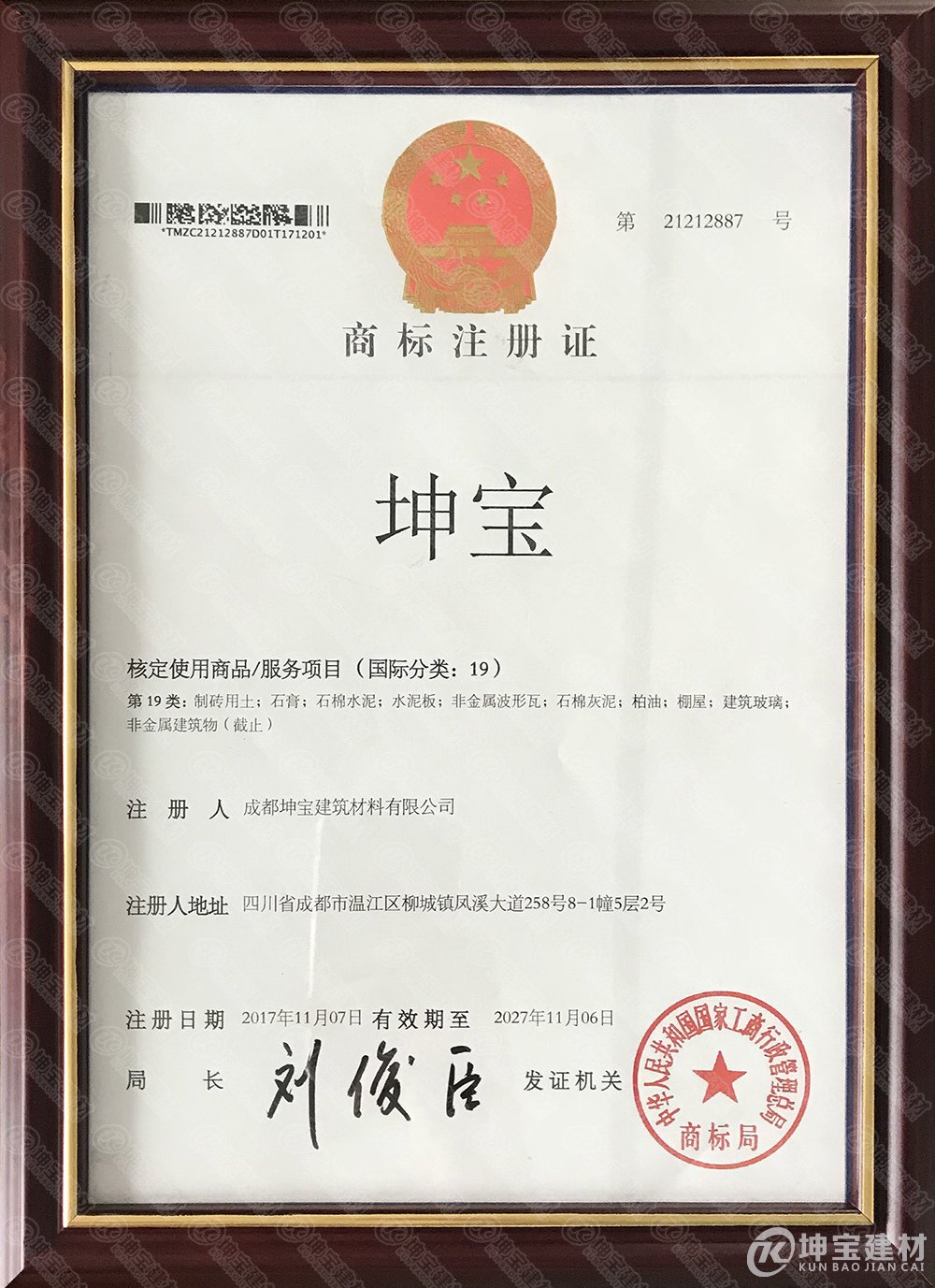 成都坤寶建筑材料有限公司一直堅(jiān)持走“綠色、低碳、環(huán)保、節(jié)能”宗旨,致力在各界政府行業(yè)協(xié)會(huì)的幫助下,成為315誠(chéng)信品牌單位,是成都坤寶建筑材料有限公司的榮耀,也是““坤寶合成樹脂瓦”品牌的見證。