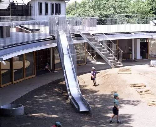 幼兒園屋頂被設計成一個傾斜的橢圓形“甜甜圈”,屋檐的***低高度2.1米,老師站在院子里就可以看到這個“無死角的游樂場”的所有區域。孩子們坐在屋頂,悠然自得地讓腿腳吊在屋檐外,給操場上表演的小朋友鼓掌助興。屋頂水槽的設計也很獨到,留有4個溢水口,這樣下雨天就可以看到屋檐上垂下的瀑布。這種自由開放的氛圍,對于培養孩子們的好奇心、自信心、主動精神、與人交往的能力無疑有巨大促進作用。也難怪網友贊這里是“***有愛”的幼兒園。