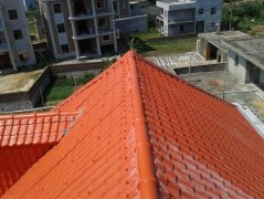 合成樹脂瓦 ,是利用高科技化學技術開發的新型建筑材料,具有重量輕、強度高、防水、防潮、防腐阻燃、隔音隔熱等諸多優良特性。一般適用于住宅高檔別墅、遮陽篷、遮陽篷、仿古建筑等的建設。在開發區,如坡度變化、農貿市