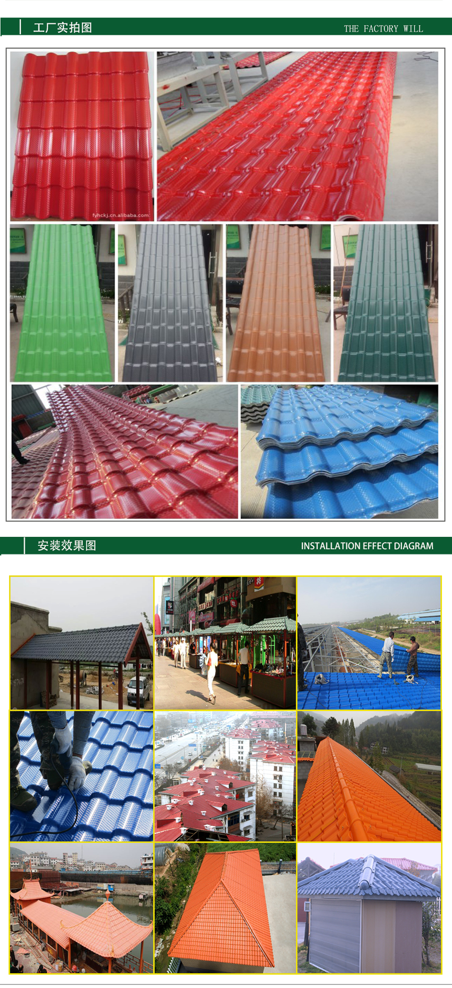 4,優(yōu)異的耐腐蝕性能:不會被雨雪侵蝕,并可長期抵御酸、堿、鹽等各種化學物質(zhì)的侵蝕。產(chǎn)品不會變形或變色,各種微生物也無法在瓦的表面生存。