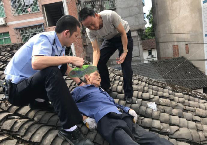 近日,渠縣公安巖峰派出所接到轄區群眾報警稱:在巖峰鎮文化街的78歲老人劉某在自家房頂蓋樹脂瓦中暑昏迷了。