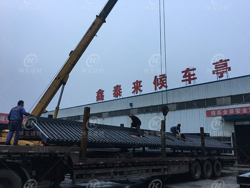 仿古一體瓦面市已經(jīng)有一段時(shí)間了,這次鑫泰來(lái)候車廳與我司采購(gòu)一批仿古屋檐拼接瓦,來(lái)做公交車的站臺(tái),并且安裝到成都一環(huán)路某段的公交站路段,以前都是采用的合成樹(shù)脂瓦來(lái)做站臺(tái)的屋面瓦,這次他們要有做一個(gè)仿古與時(shí)尚交融的建筑裝飾。大家仔細(xì)看細(xì)節(jié)。