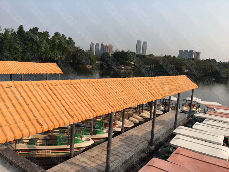 農(nóng)村的房屋基本使用的是陶瓷瓦片,而這樣的陶瓷瓦青黑,容易積垢,不夠美觀;簡陽賈家農(nóng)家樂在經(jīng)過一番了解后,選擇了成都邦有道合成樹脂瓦。