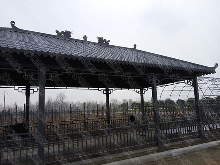 - 樹脂小青瓦停車棚人字坡安裝效果圖