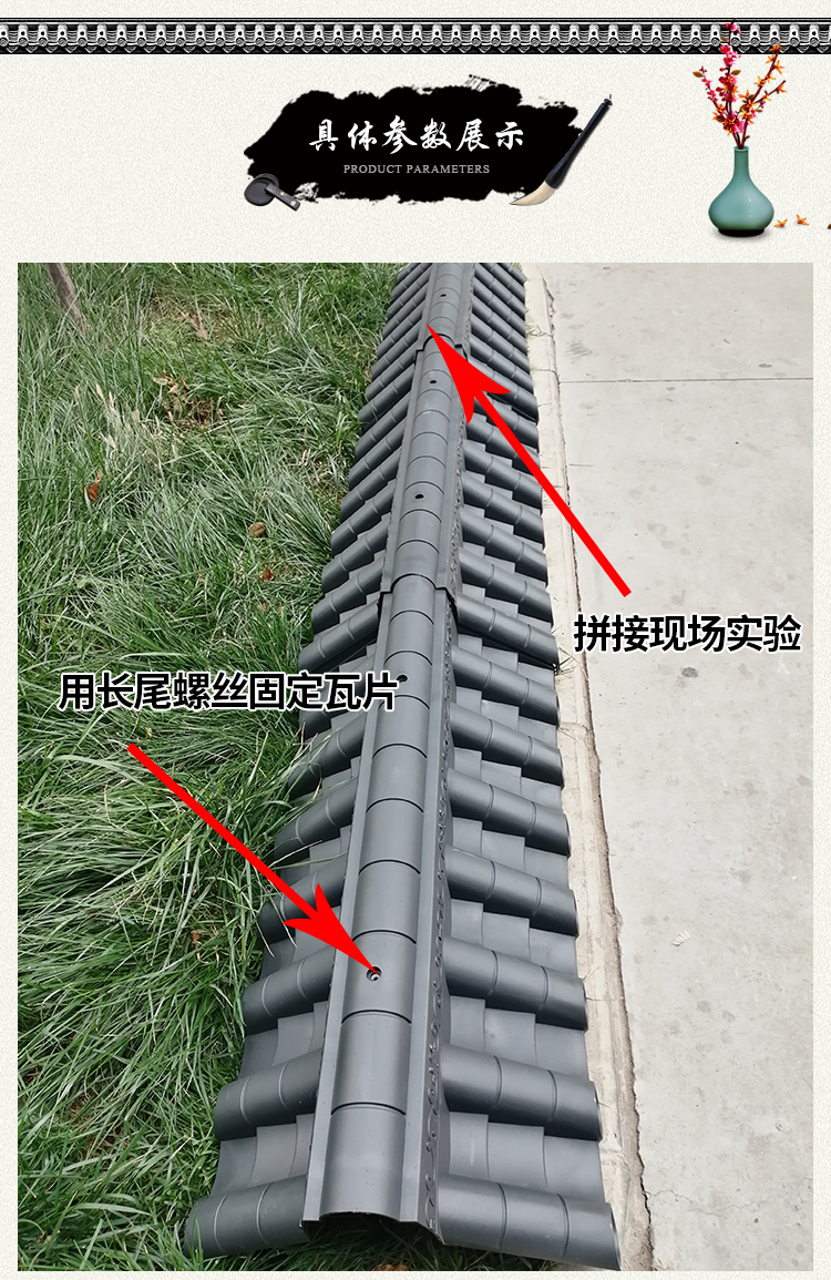 規(guī)范常見的合成樹脂瓦薄厚一般在3.0mm左右,有的生產(chǎn)廠家以便廉價市場競爭生產(chǎn)制造出2.5mm,?2.0mm的合成樹脂瓦。原料是節(jié)約了,價格低了,使用壽命折扣了。