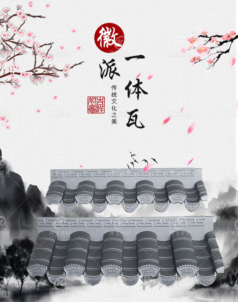 用途:徽派建筑裝飾(室內外皆可用)圍墻、門頭、徽派古建筑、徽派小瓦