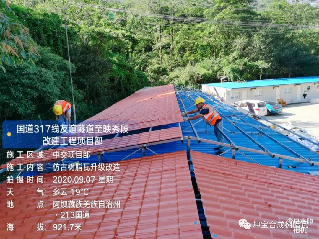 中交路橋集團國道317線隧道至映秀段改建工程項目部屋頂加蓋樹脂瓦工程,接下來看樹脂瓦加蓋屋面的部分效果!