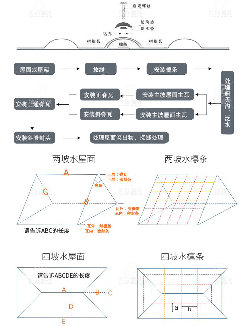 用途:農村自建別墅,新建房屋,舊房翻新,舊城改造,廠房屋面